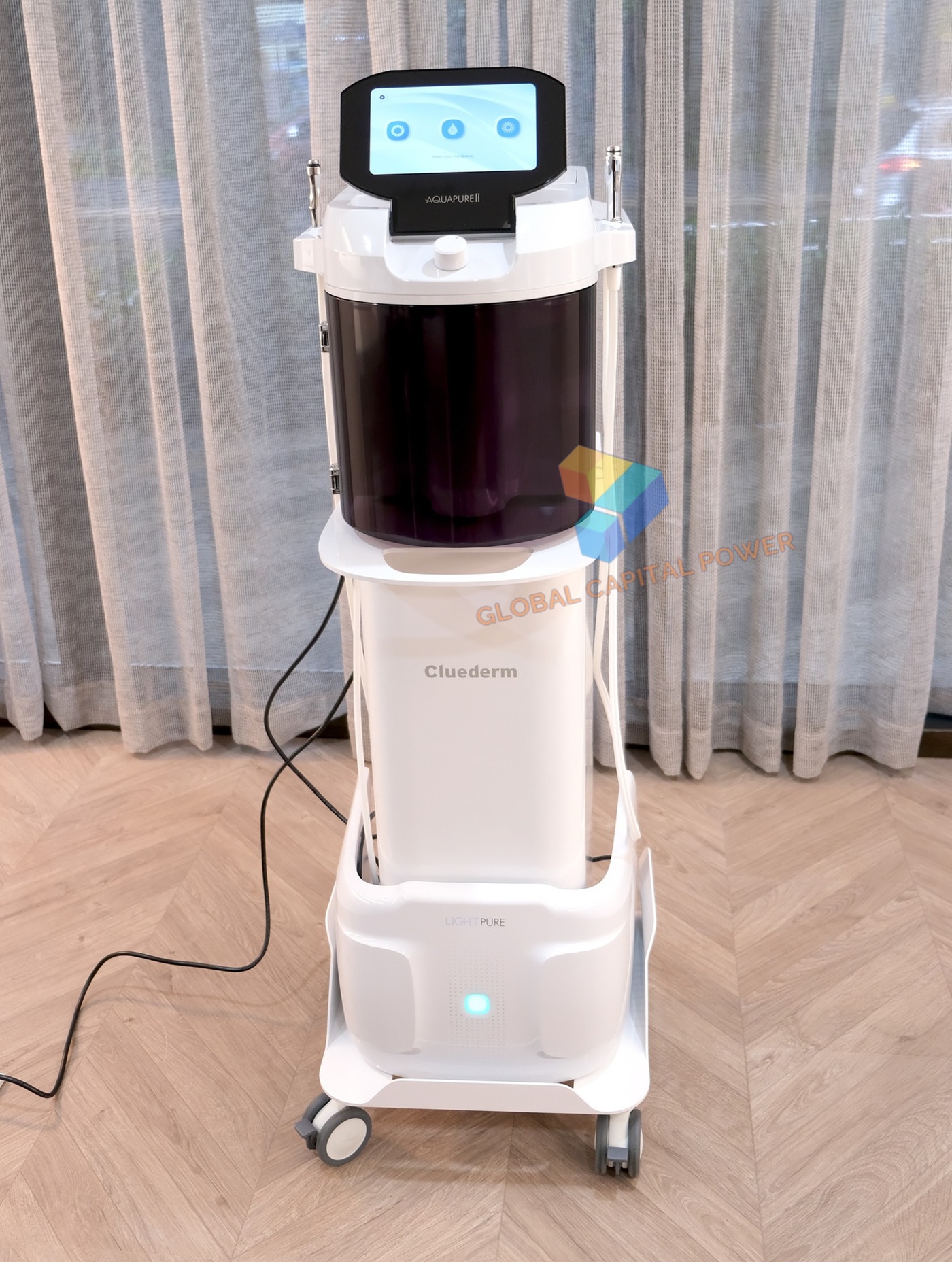 Cluederm Aquapure II Smart Facial Care is a multi-functional facial and body care device which combines wet & dry abrasions, micro-focused needling and LED treatments – all in one single system.